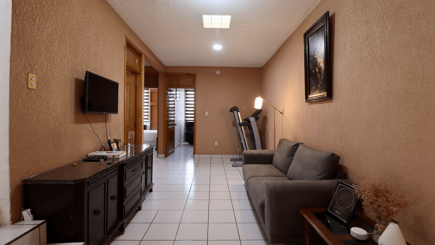 • Primer nivel: pensado para la vida familiar, cuenta con una amplia sala de TV, estudio y tres recámaras con clósets de madera.
