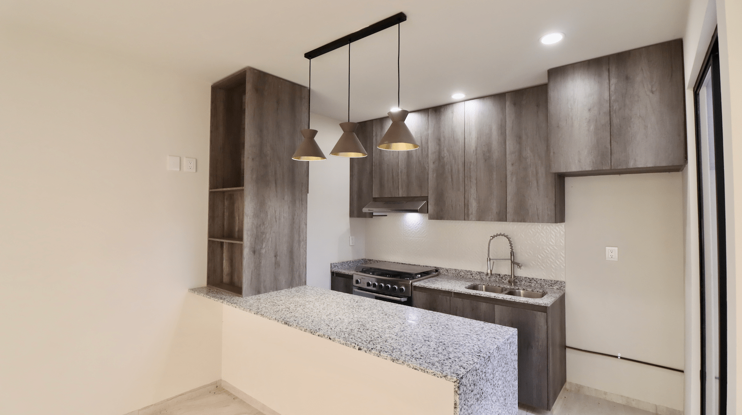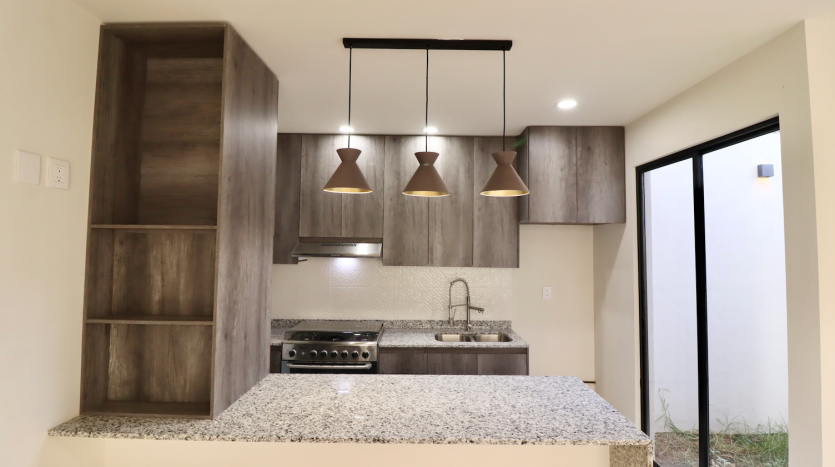 Cuenta con una recámara completa, una elegante cocina de autor con cubierta de granito y acabados de lujo, baño completo compartido, bodega en área de cochera y dos jardines, que brindan excelente iluminación natural y ventilación.
