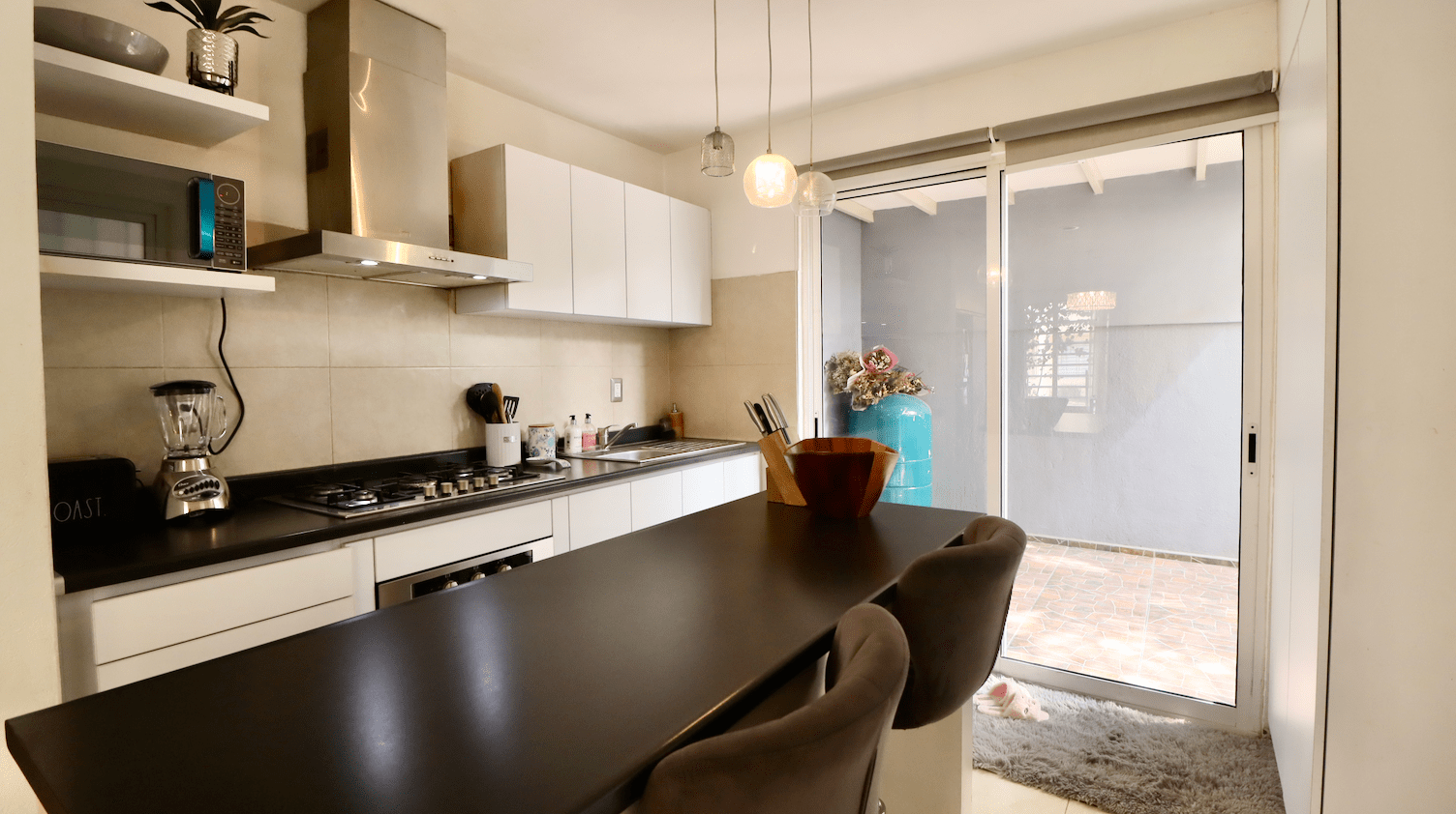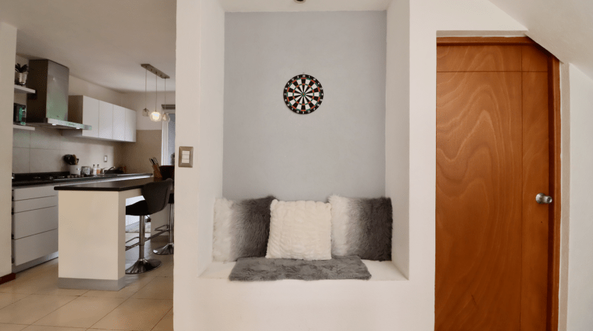 En PLANTA BAJA encontrarás un área de sala y comedor muy iluminada, cocina integral en isla con diseño moderno, espacio para estudio y medio baño para visitas.