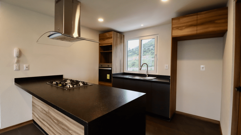 Situado en el noveno piso, el departamento cuenta con una distribución práctica y elegante. Su amplia área de sala y comedor se conecta con una terraza privada, ideal para disfrutar de las mejores vistas de Morelia. La cocina integral tipo isla con cubierta de granito y campana extractora brinda un espacio perfecto para convivir y preparar tus alimentos con estilo.