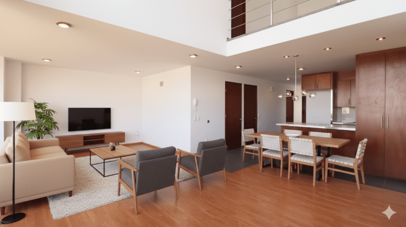 Primer Nivel: Mezzanine funcional como área de TV, trabajo o lectura, además de una recámara adicional con vestidor y baño completo, perfecta como habitación principal o privada para visitas.