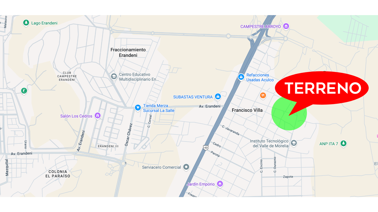 Se vende terreno al Norte de Morelia, a 3 cuadras de la carretera salida a Quiroga, a 9 minutos de la Universidad La Salle y a 10 minutos del Tecnológico de Morelia.